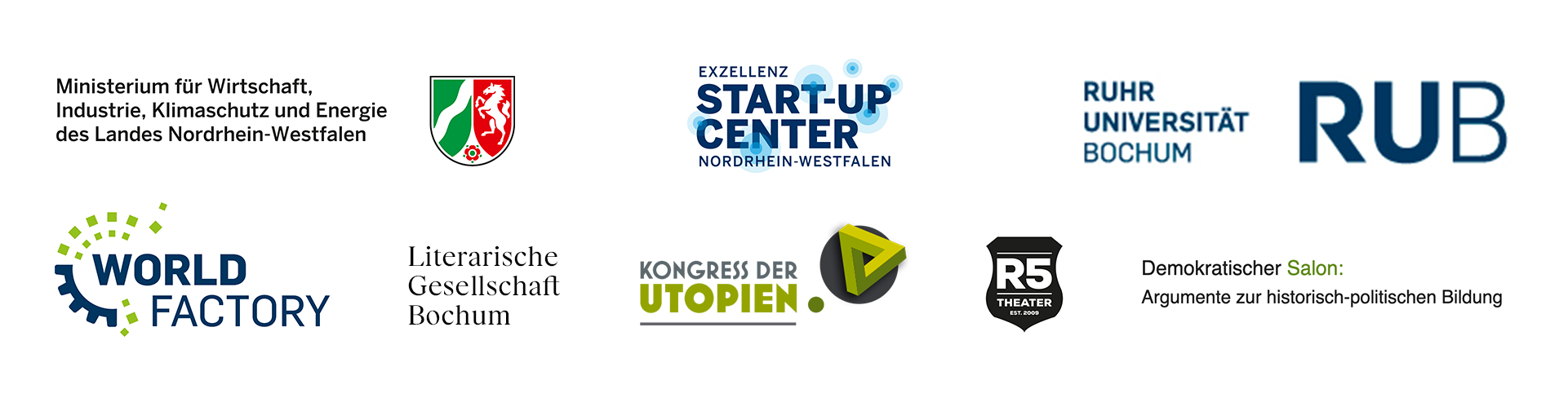 FördererGefördert wurden das auf zwei Semester angelegte innovative Praxisprojekt und die Tagung KlimaFiktionen 2024 vom Ministerium für Wirtschaft, Industrie, Klimaschutz und Energie des Landes Nordrhein-Westfalen bzw. von der Landesförderung der Exzellenz Start-up Center. NRW durch das Universitätsprogramm „Innovative Praxisprojekte“ der Ruhr-Universität Bochum.
